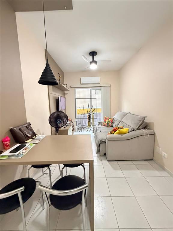 O apartamento possui 55 m2 de área útil, com 1 dormitório, sala, varanda com vista mar, 1 banheiro, sala com 2 ambientes, lavanderia e 1 Vaga.