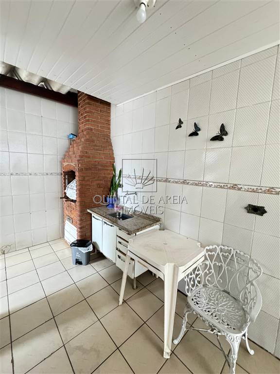 - Espaço gourmet com churrasqueira no fundo.